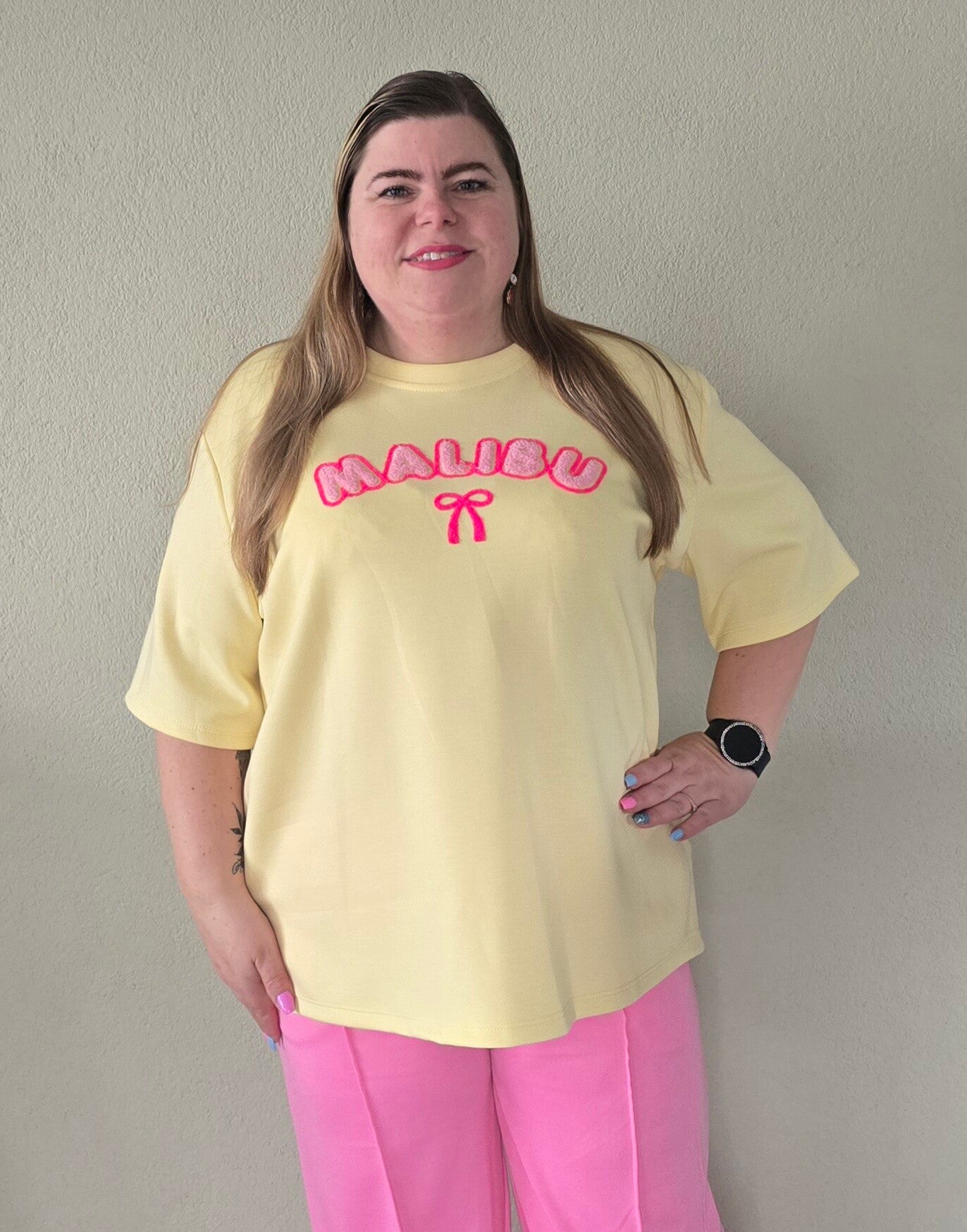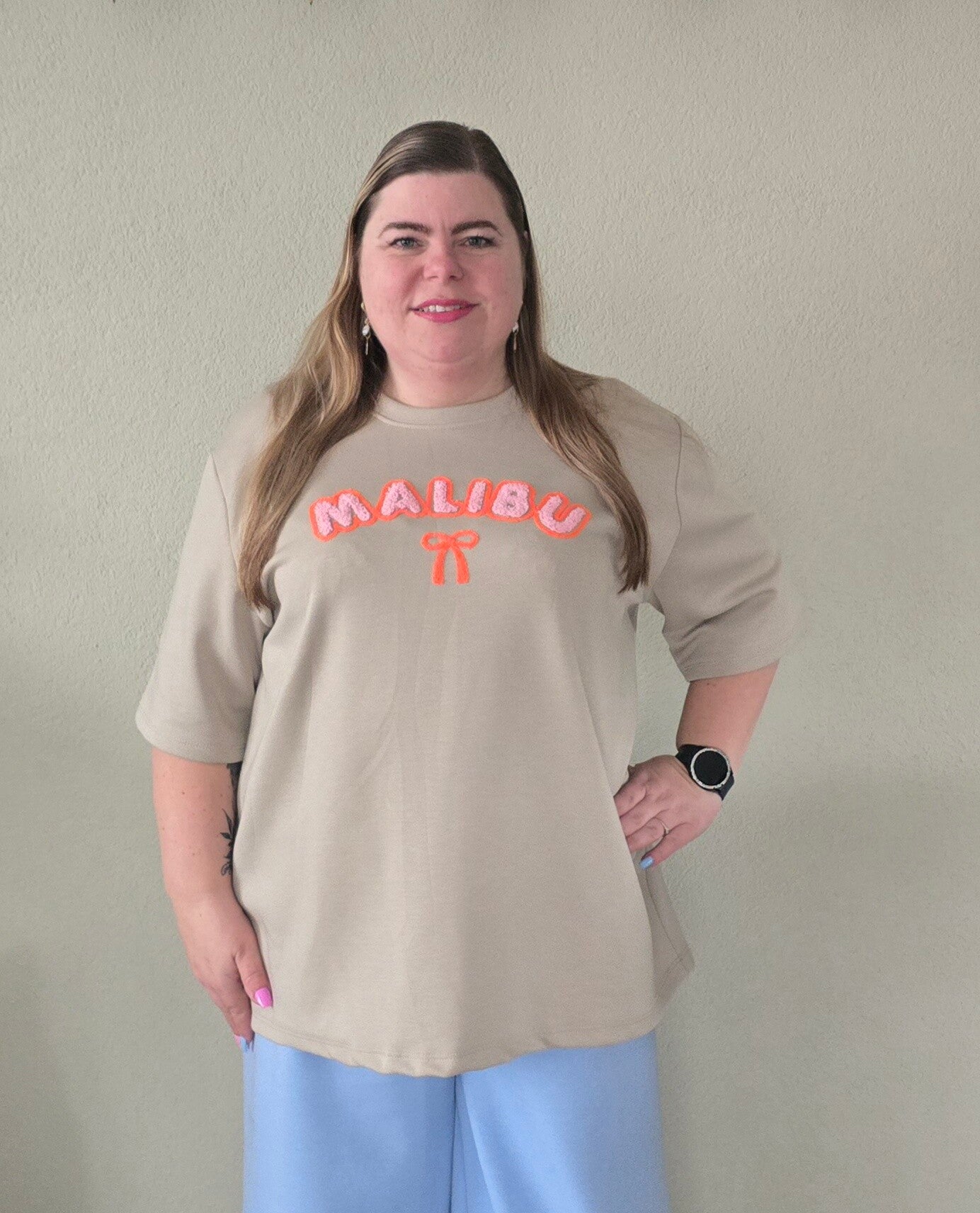 Model is 1,60 lang en heeft kledingmaat 46.